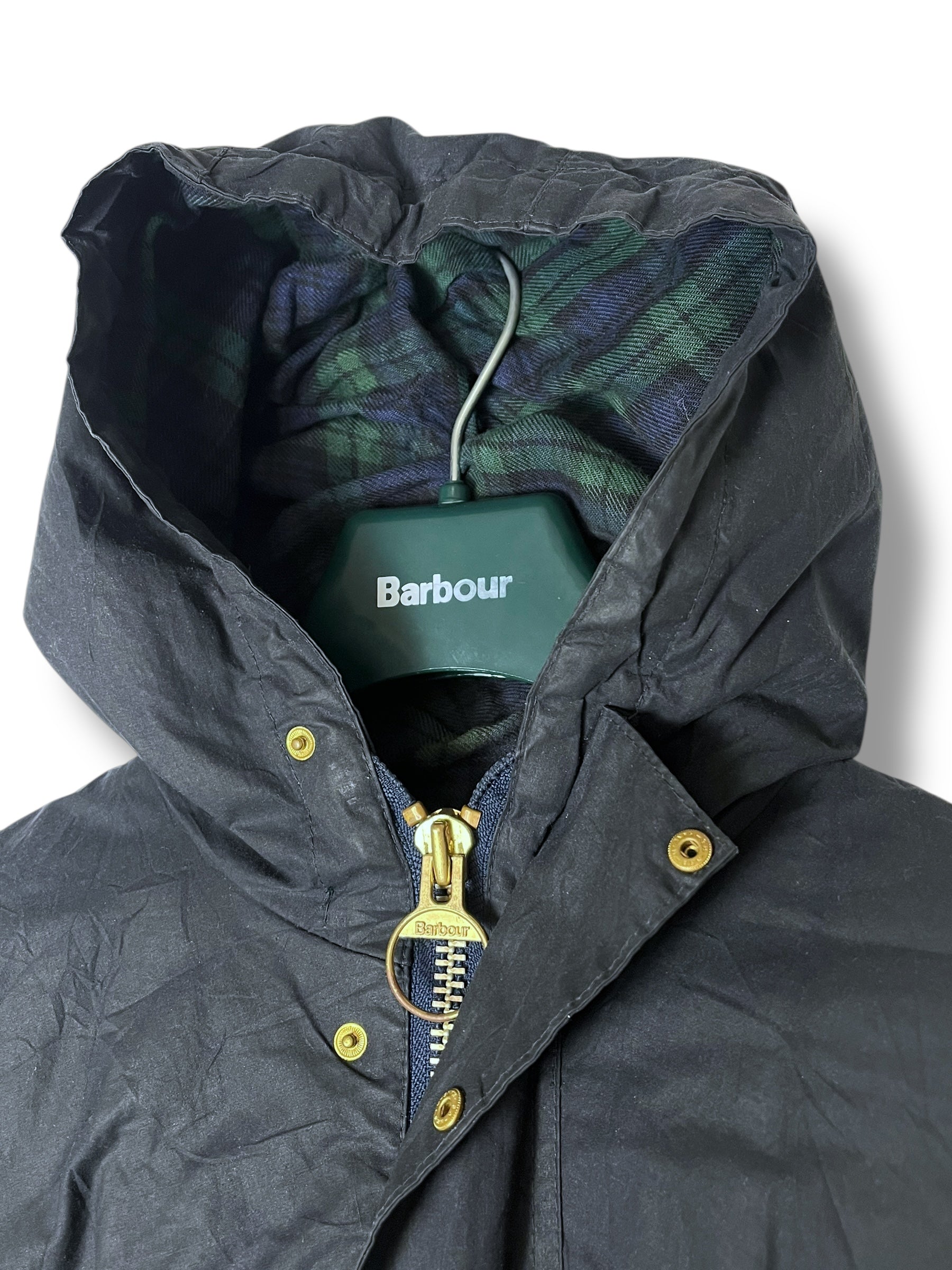 Keywords: Barbour Durham 1994, vintage lightweight jacket, waxed cotton, rain jacket, British heritage, fixed hood, collector’s piece