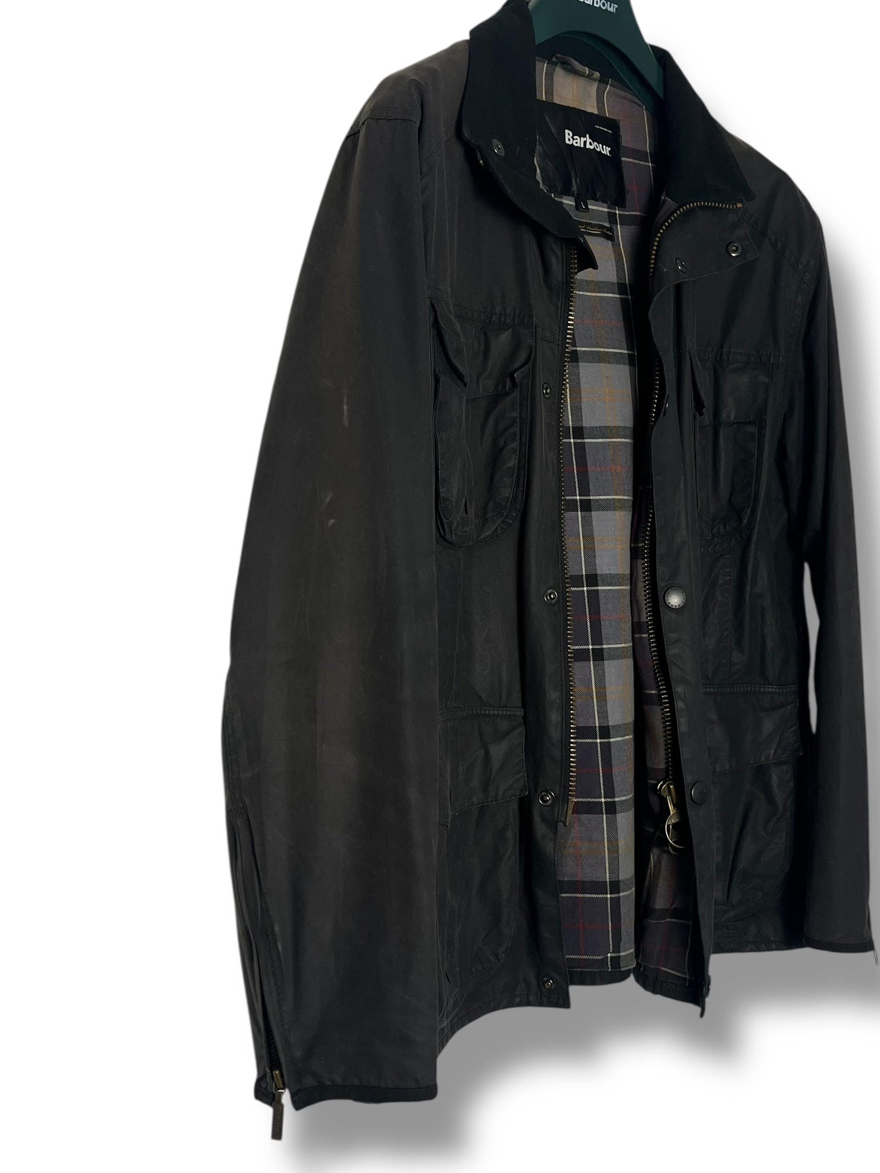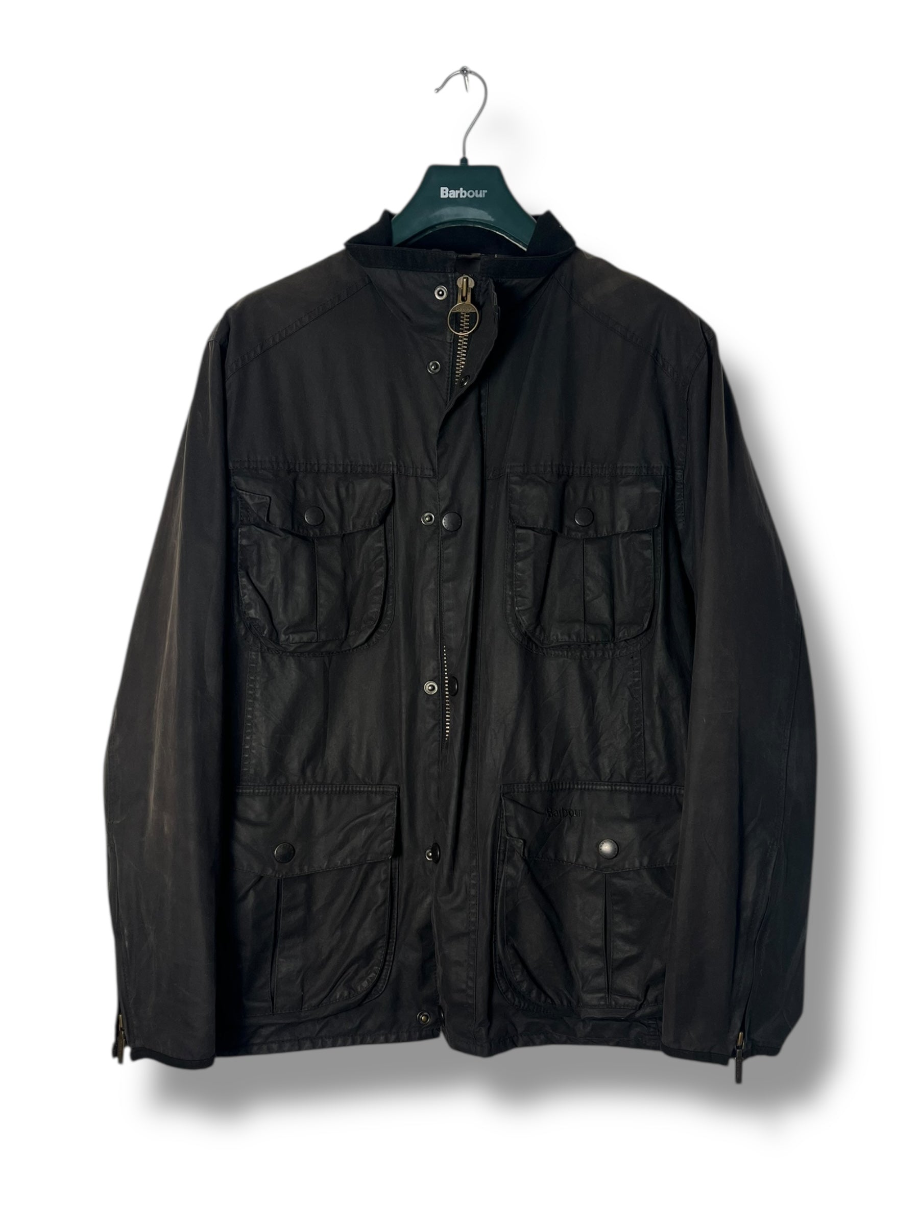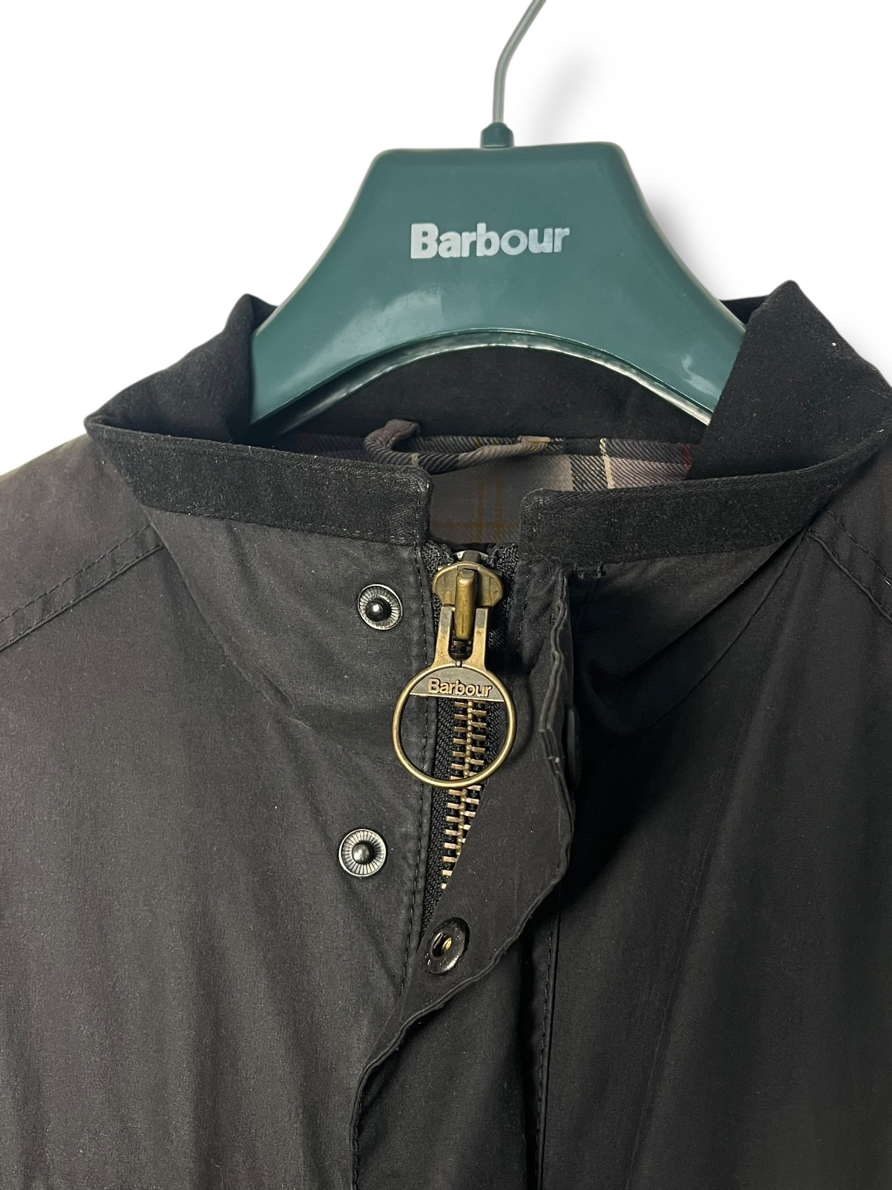 Keywords: Barbour Utility Jacket, Field Jacket, Black Wax Jacket, Vintage Barbour, Outdoor Jacket, Size L