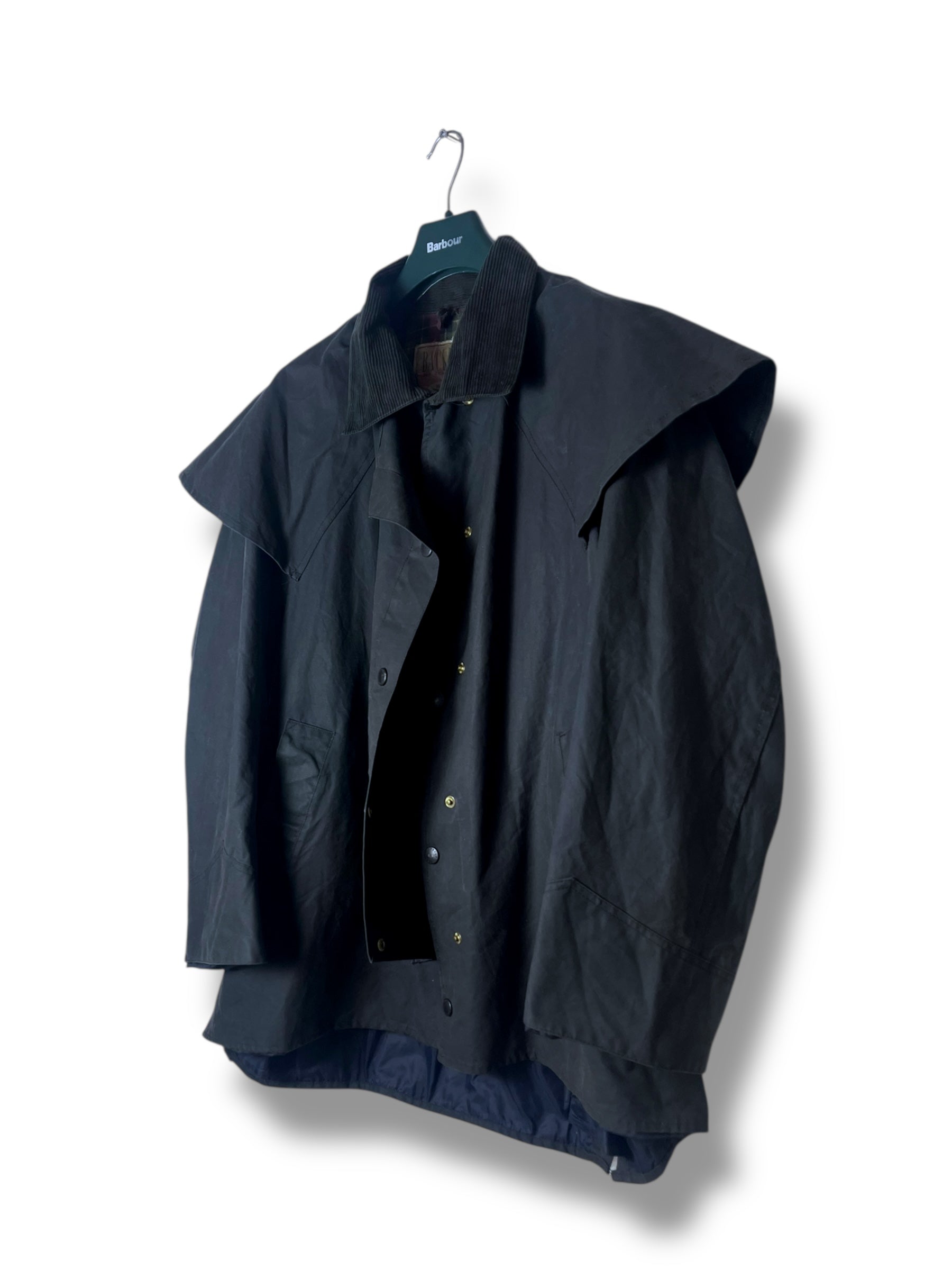 Keywords: Backhouse for Barbour, waxed cotton coat, Barbour New Zealand, Drizabone short, vintage Barbour, rain cape jacket, waxed work coat, British heritage.