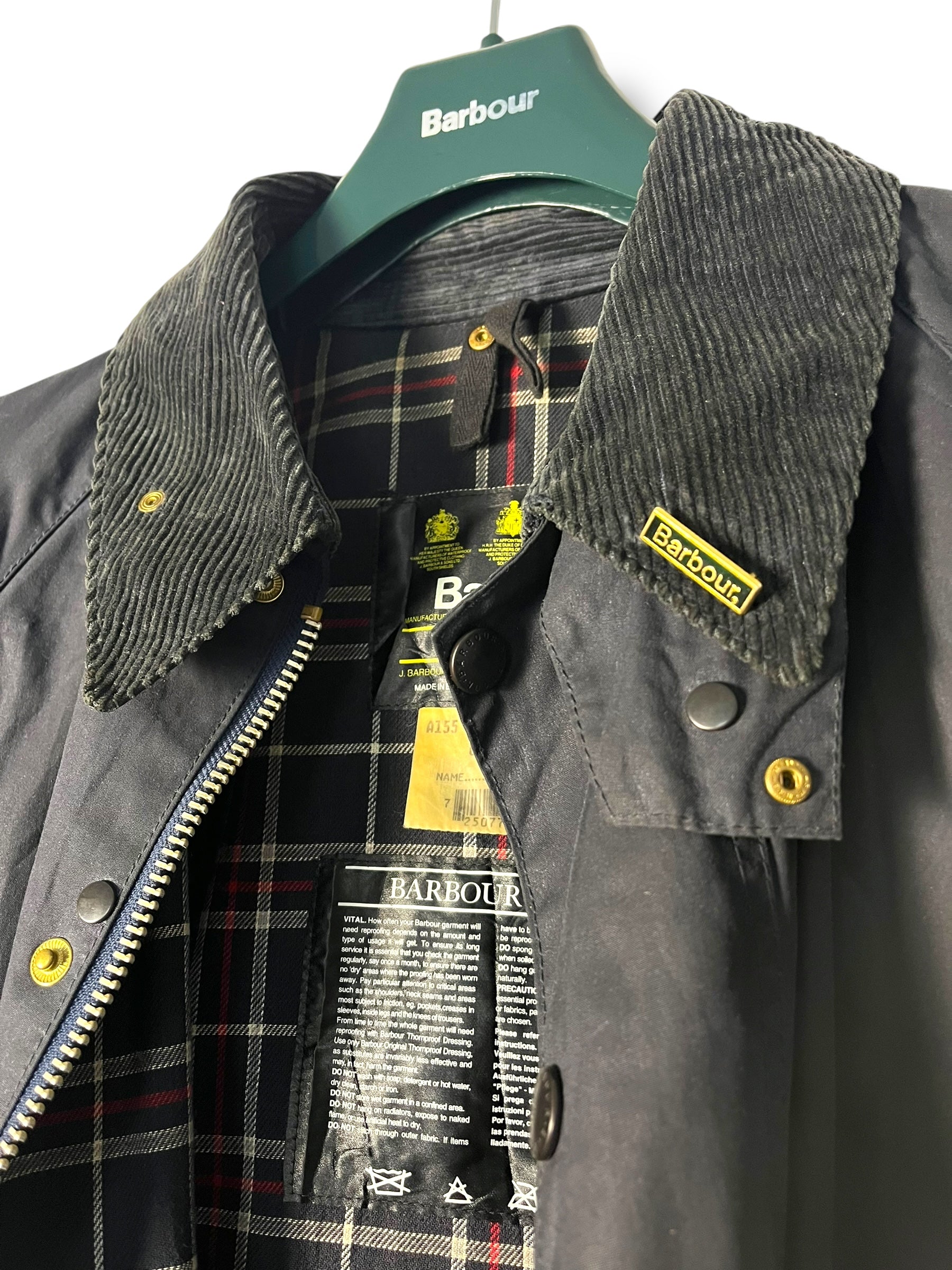 Keywords: Barbour Beaufort 1994, vintage wax jacket, navy waxed cotton, game pocket, classic Barbour, British heritage, collector’s piece