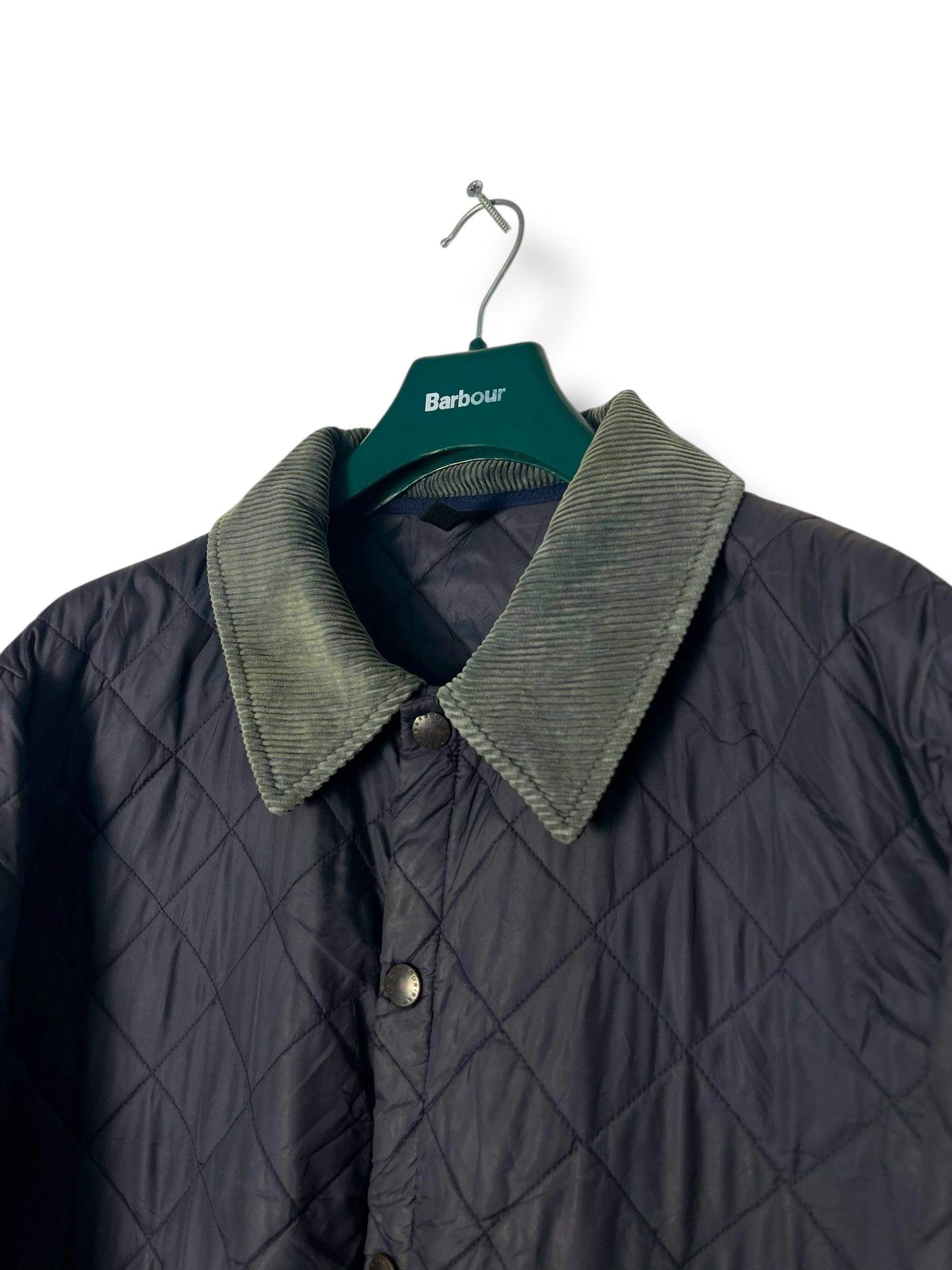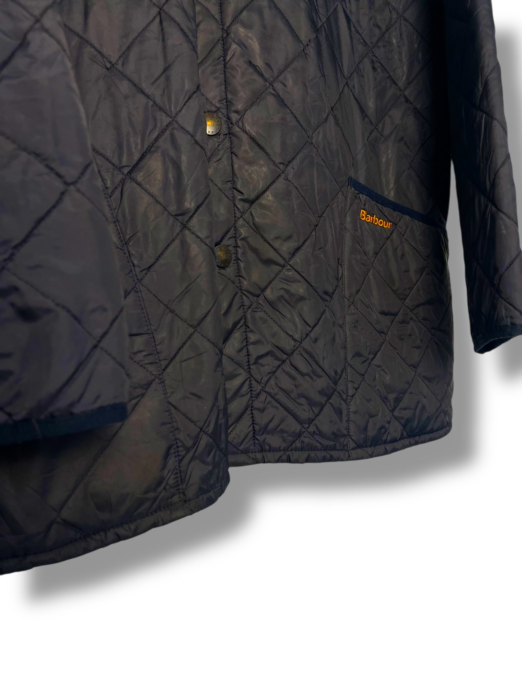 Keywords: Barbour Liddesdale, navy quilted jacket, Barbour vintage, XL, lightweight jacket, pre-owned Barbour