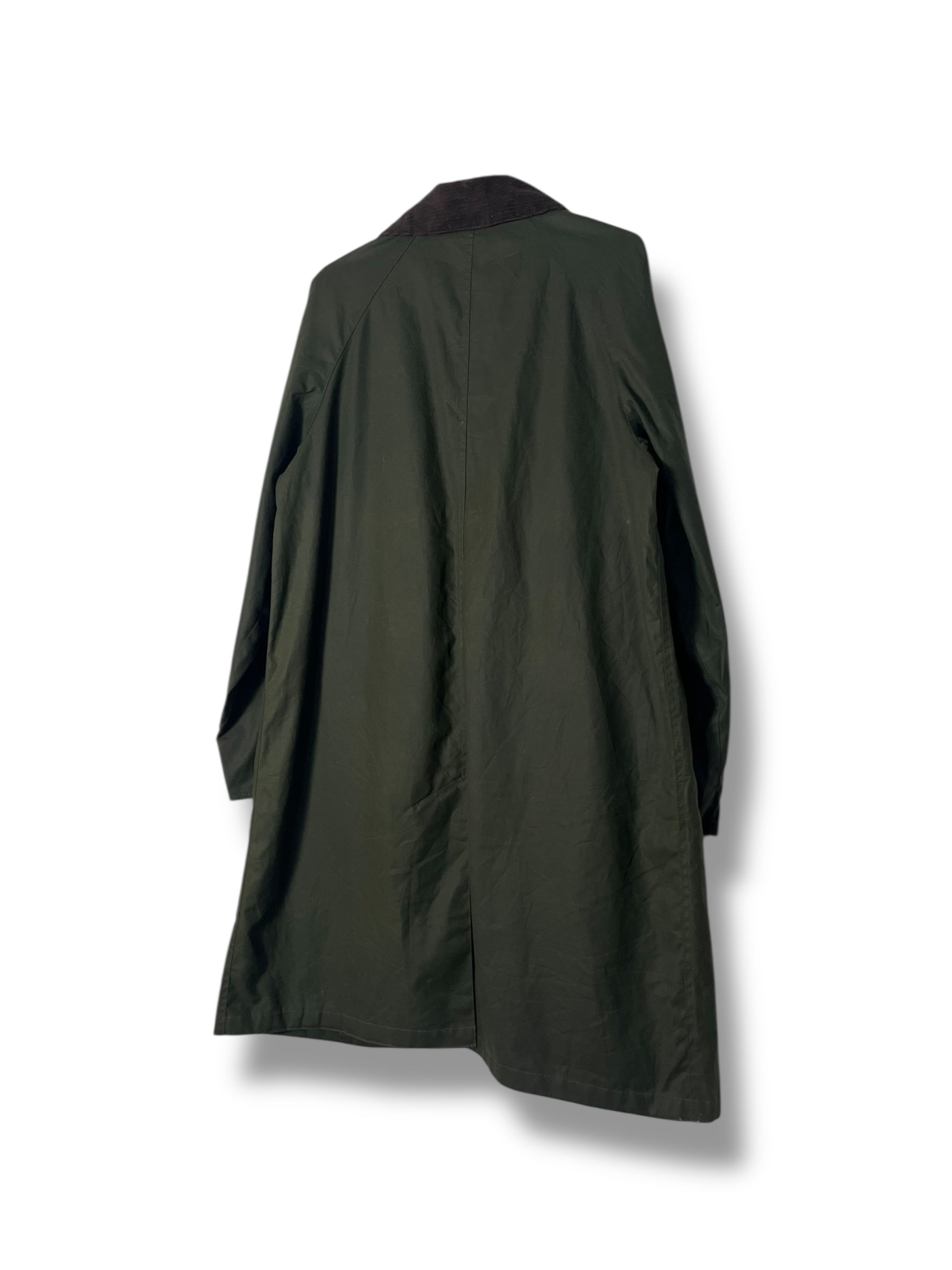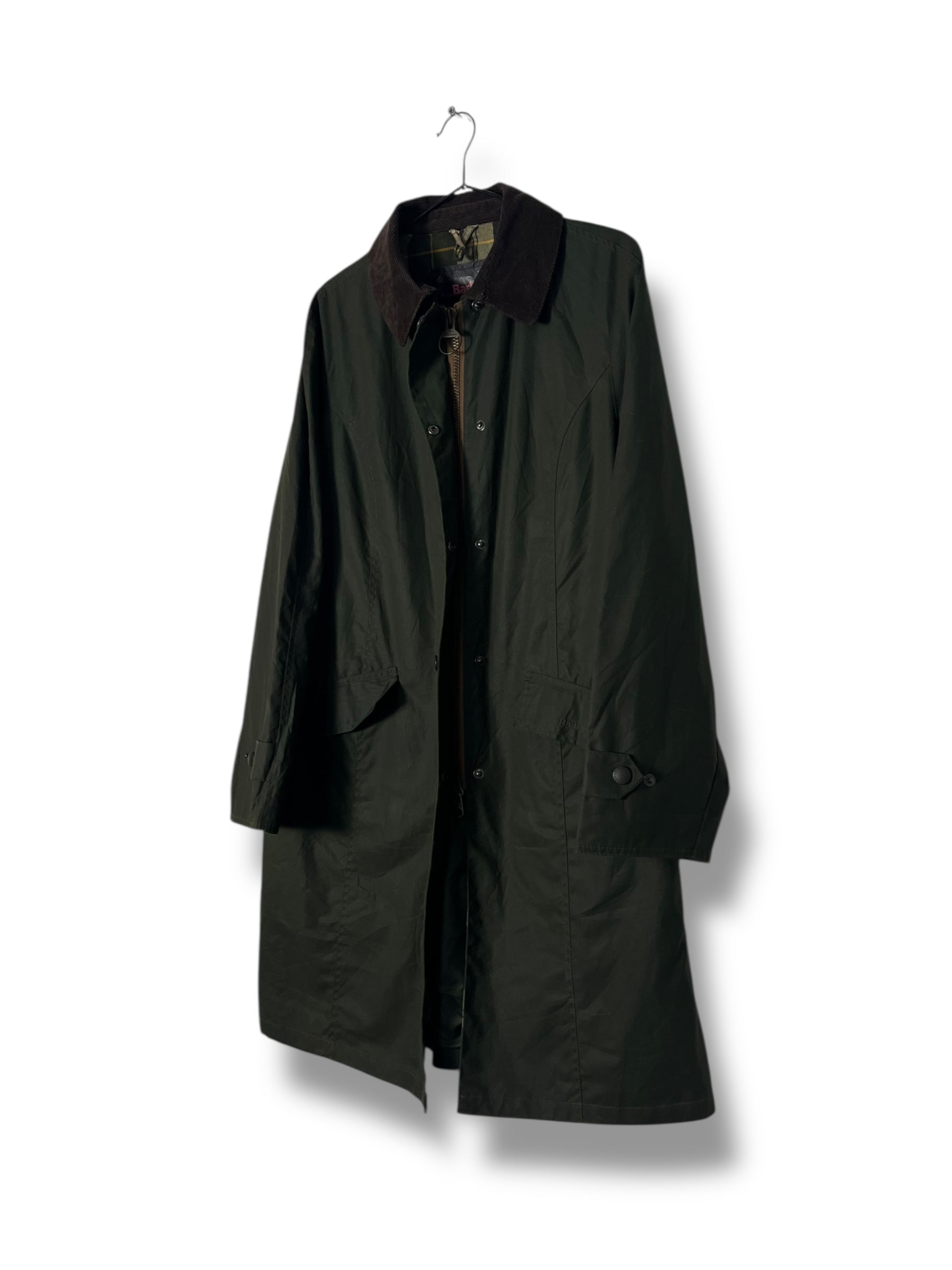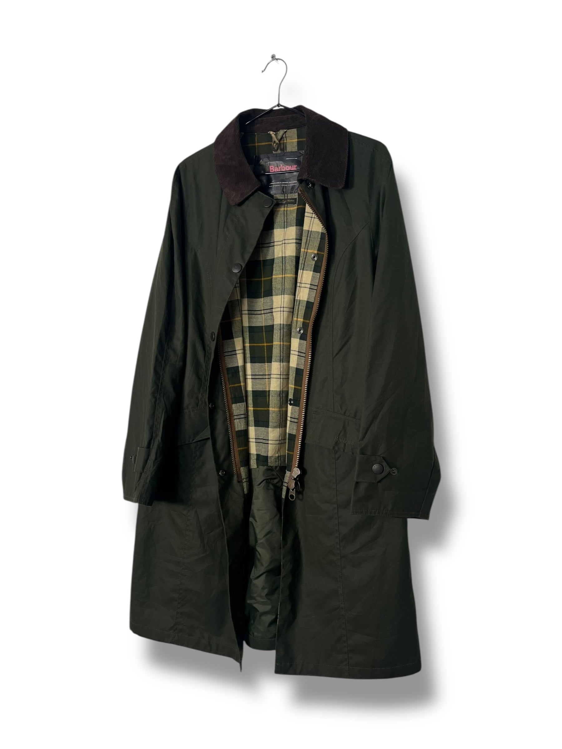 Keywords: Barbour, Newbury, waxed cotton, sage green, vintage women’s coat, UK 12, waterproof jacket, British heritage, classic outerwear