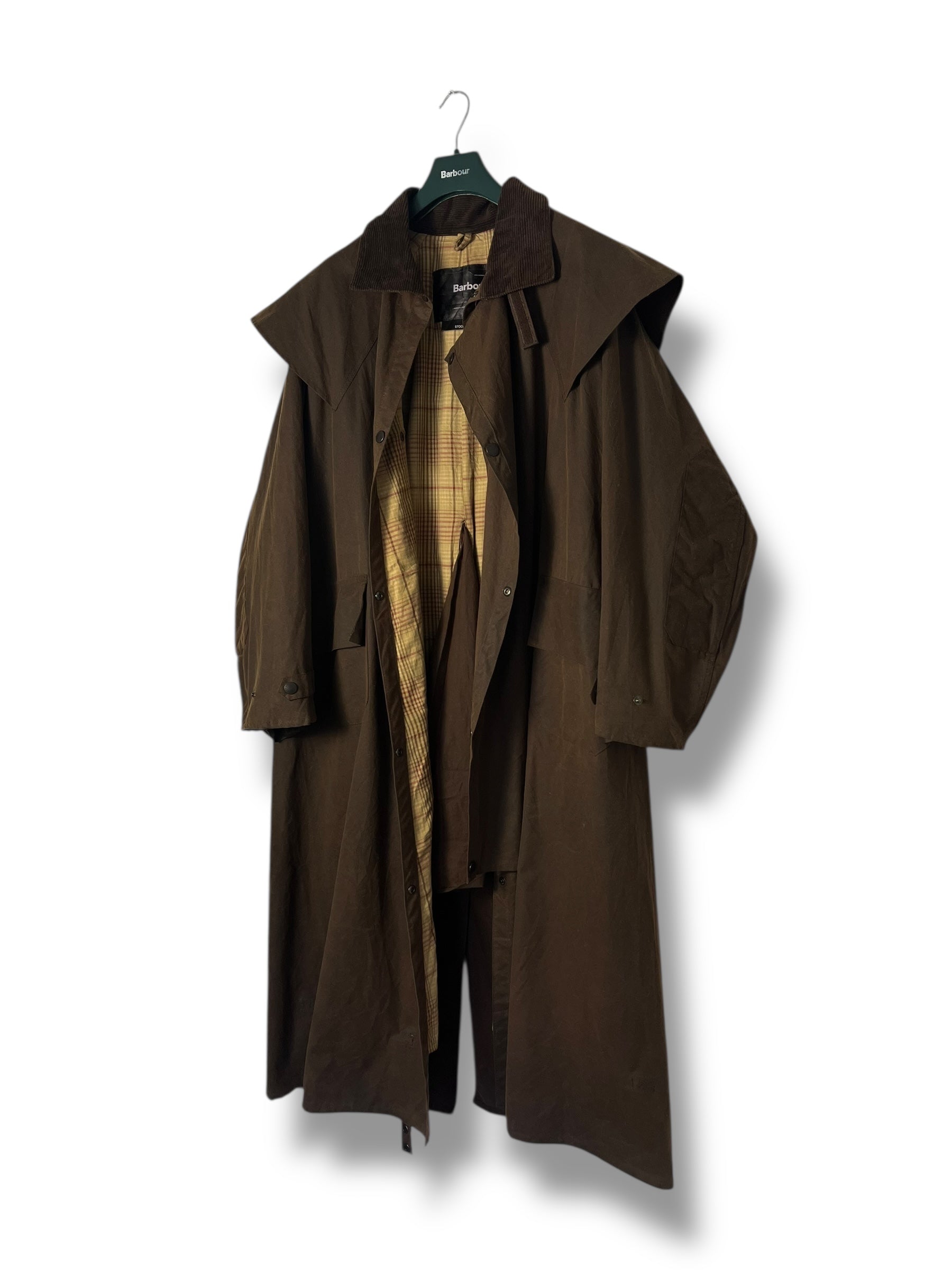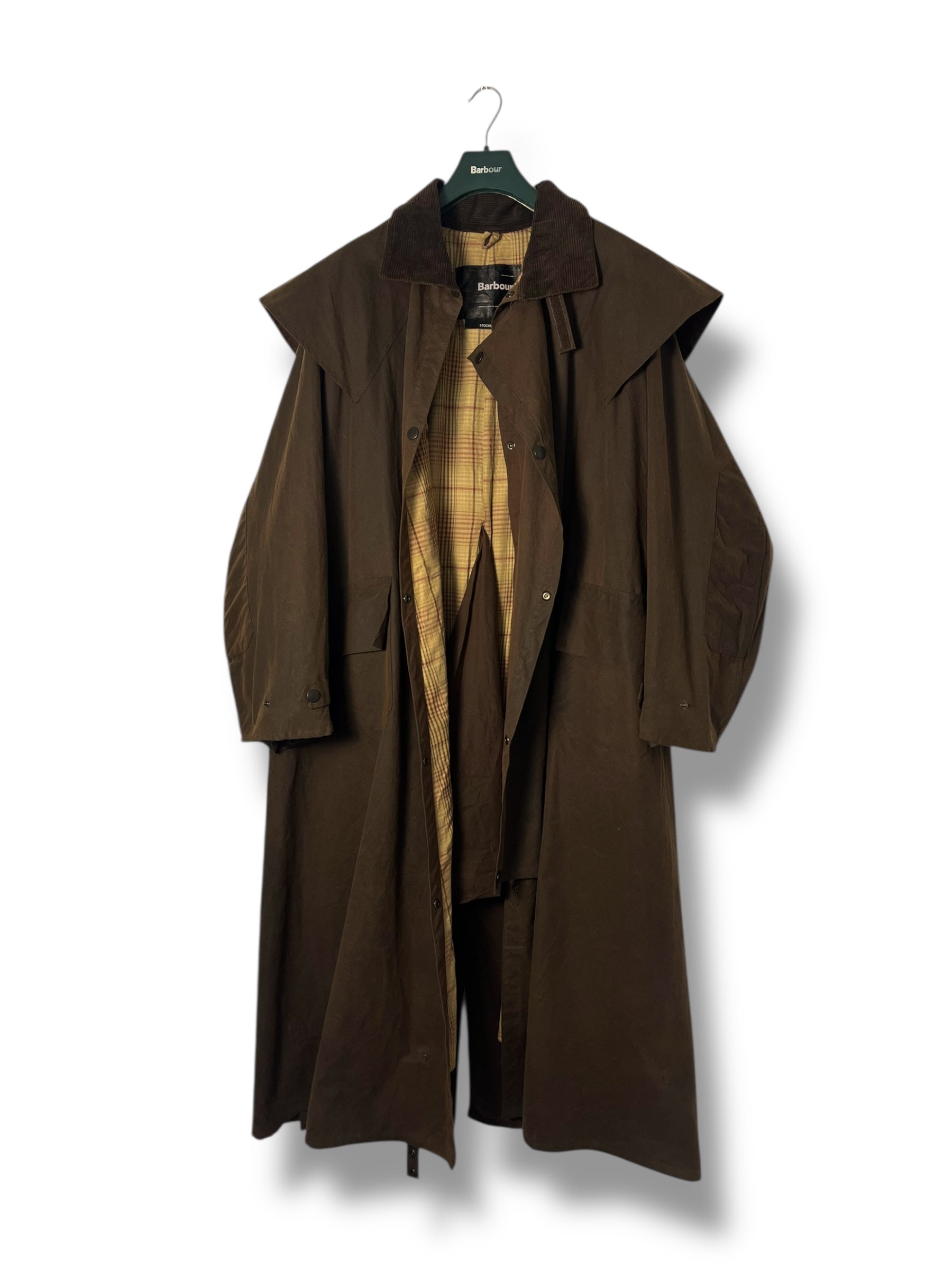 Keywords: Barbour Stockman Coat, vintage waxed jacket, brown wax coat, riding coat, waterproof long coat, Barbour XXL, Barbour 2000s, outdoor wear, British heritage.