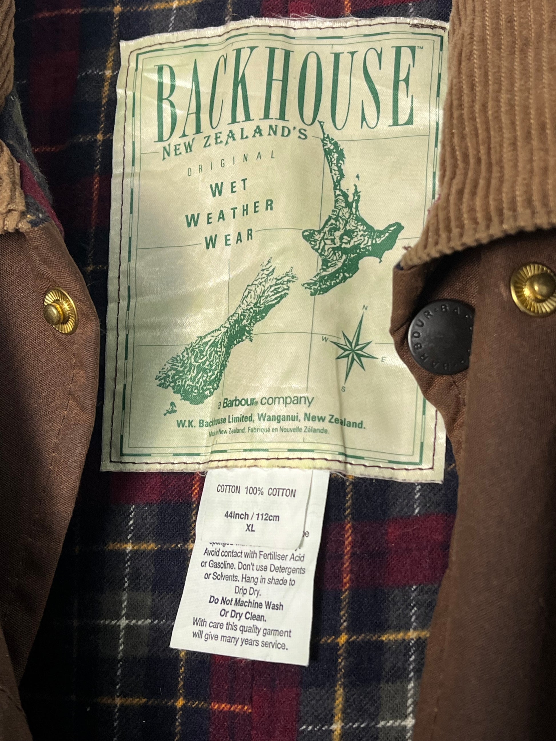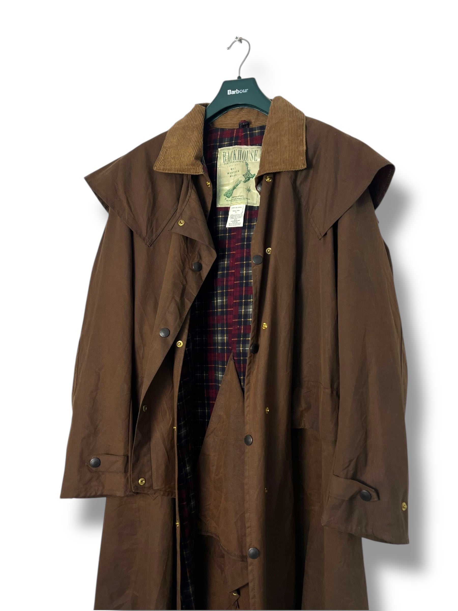 Exceptional vintage Barbour x Backhouse raincoat from the 1990s, crafted in 100% waxed cotton and produced in collaboration with the iconic New Zealand brand Backhouse, specialists in wet-weather garments.