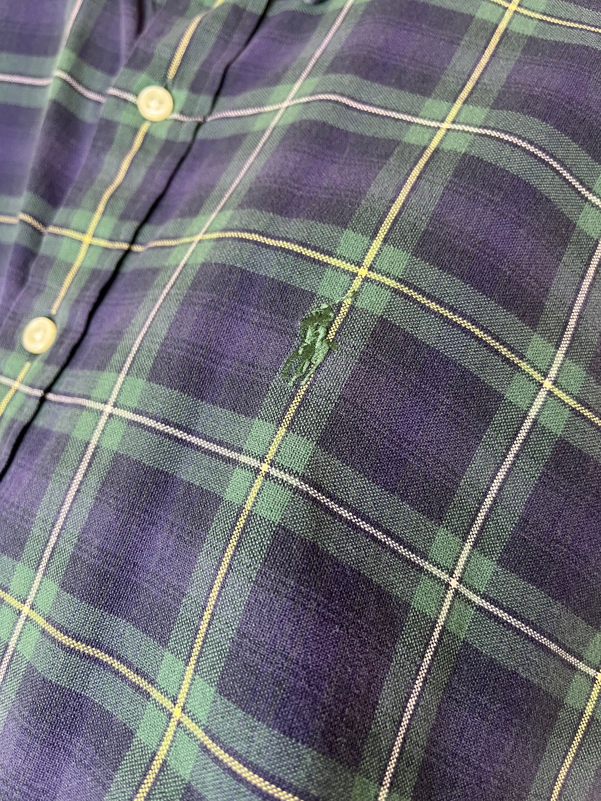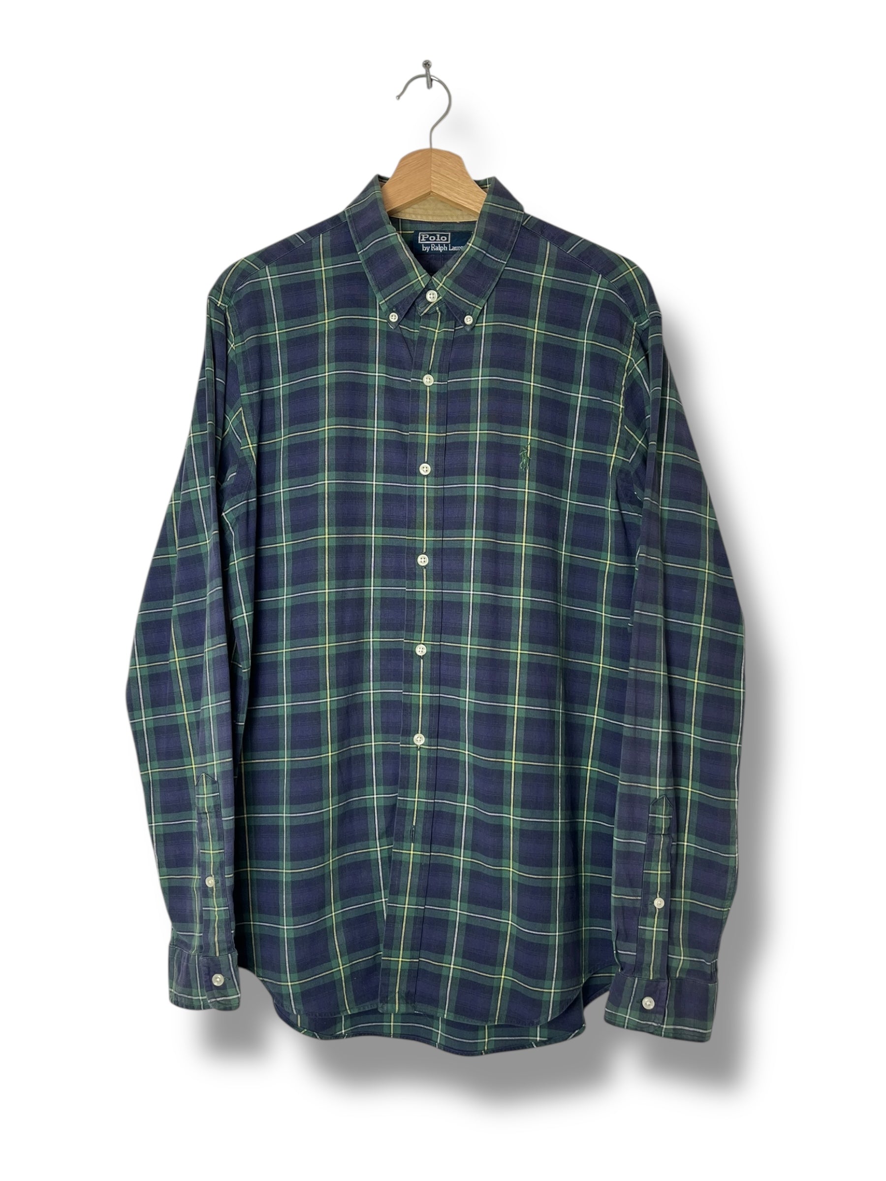 Keywords: Polo Ralph Lauren vintage shirt, 90s green check shirt, tonal pony logo shirt, premium vintage menswear, classic button-down shirt.