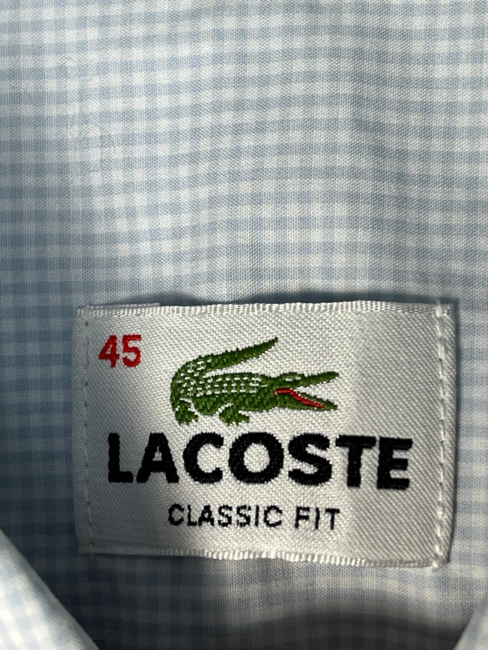 Keywords: Lacoste shirt, light blue check shirt, vintage cotton shirt, crocodile logo shirt, Draps vintage.