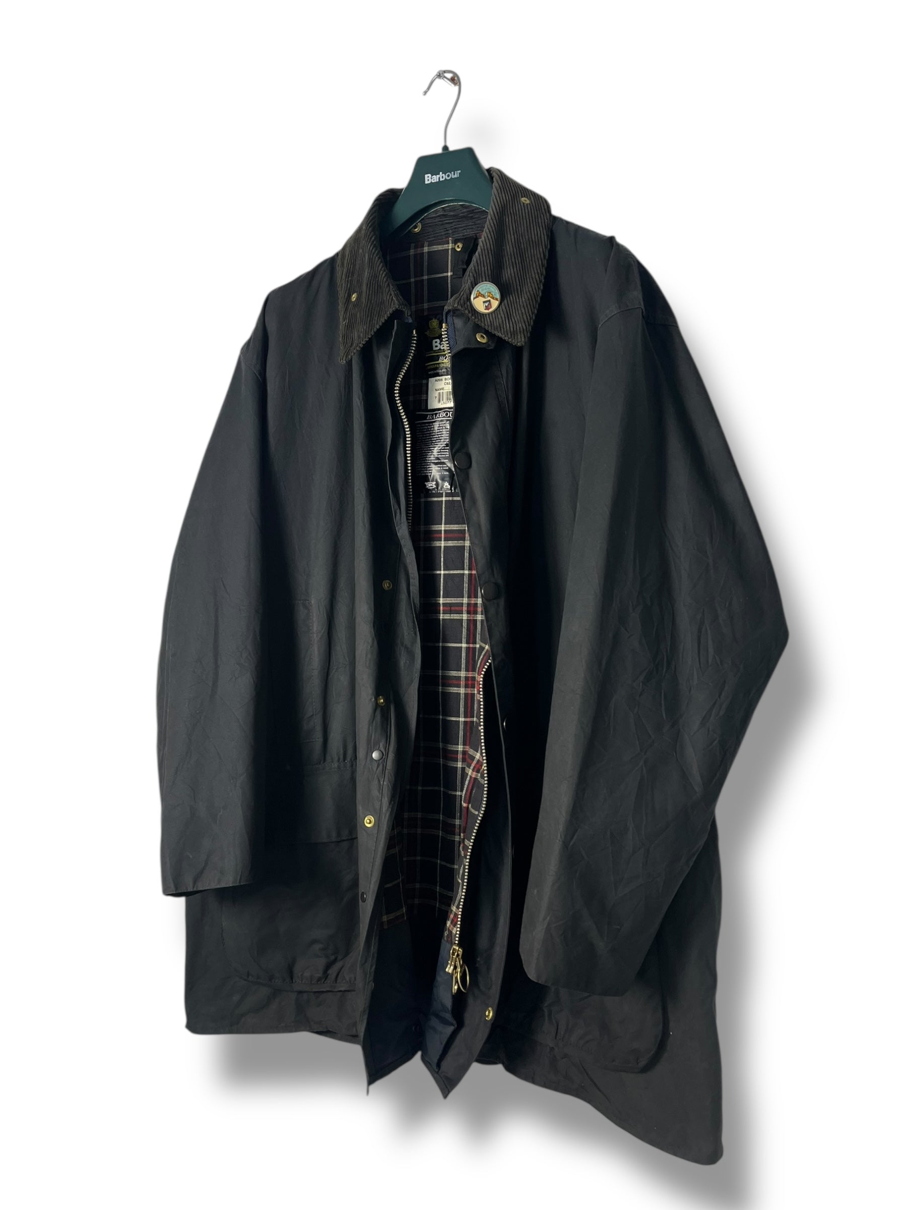 Keywords: Barbour Border, Blue Navy, vintage wax jacket, Barbour 1997, long coat, Barbour waxed cotton, Made in England, Barbour XXL.