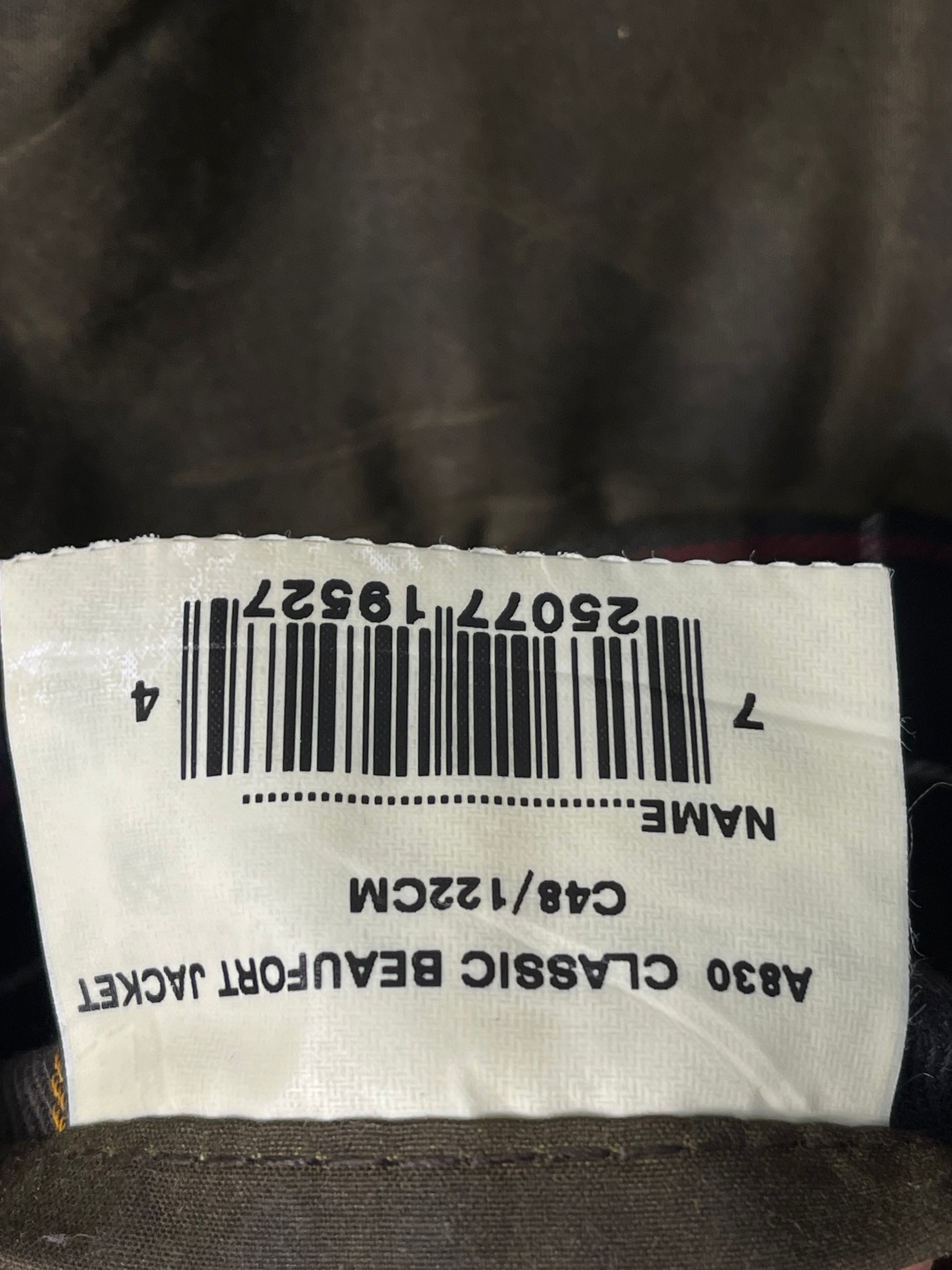 Keywords: Barbour Beaufort C48, classic Beaufort jacket, olive wax jacket, vintage Barbour, waxed cotton Beaufort, Made in England.