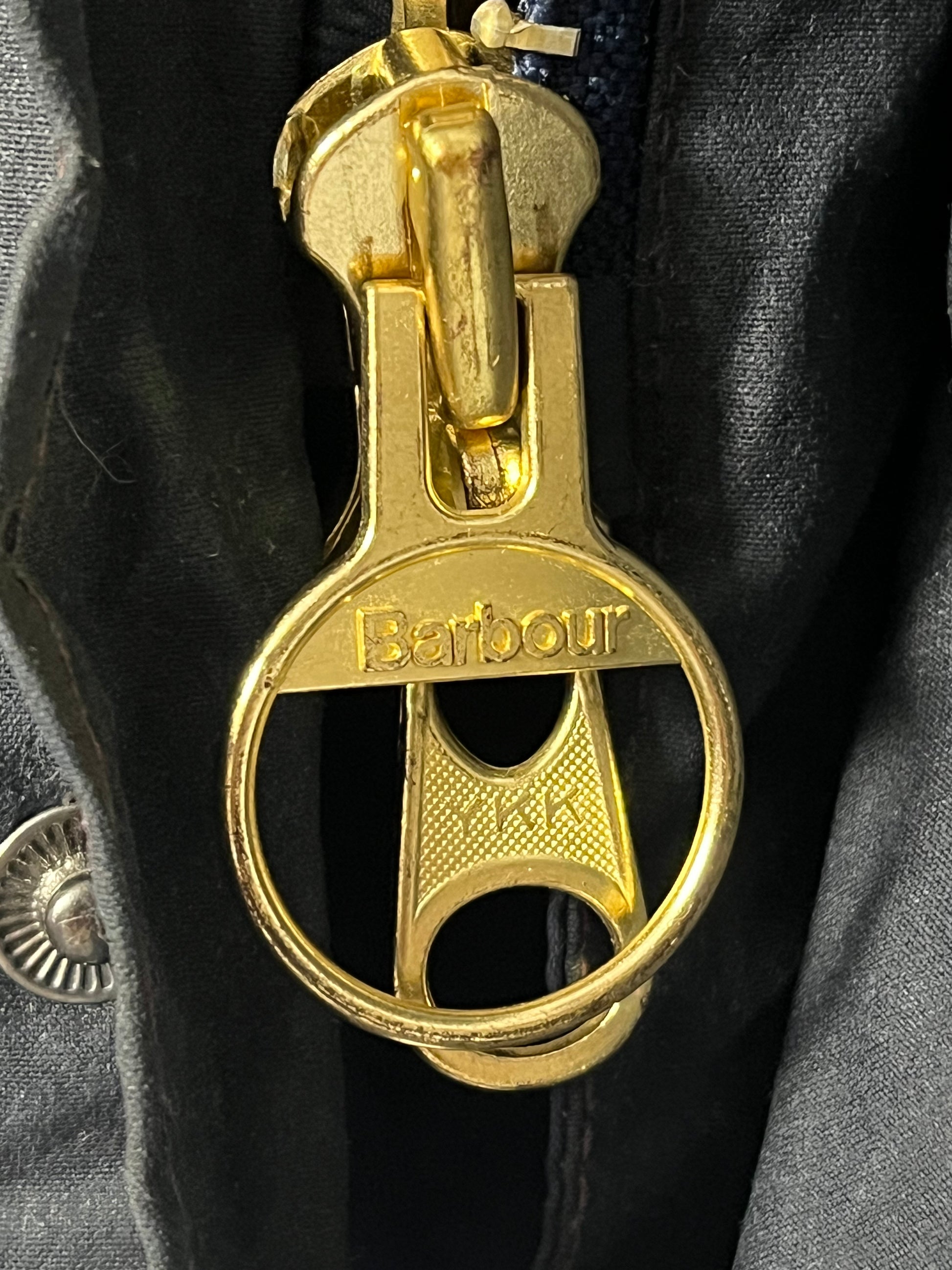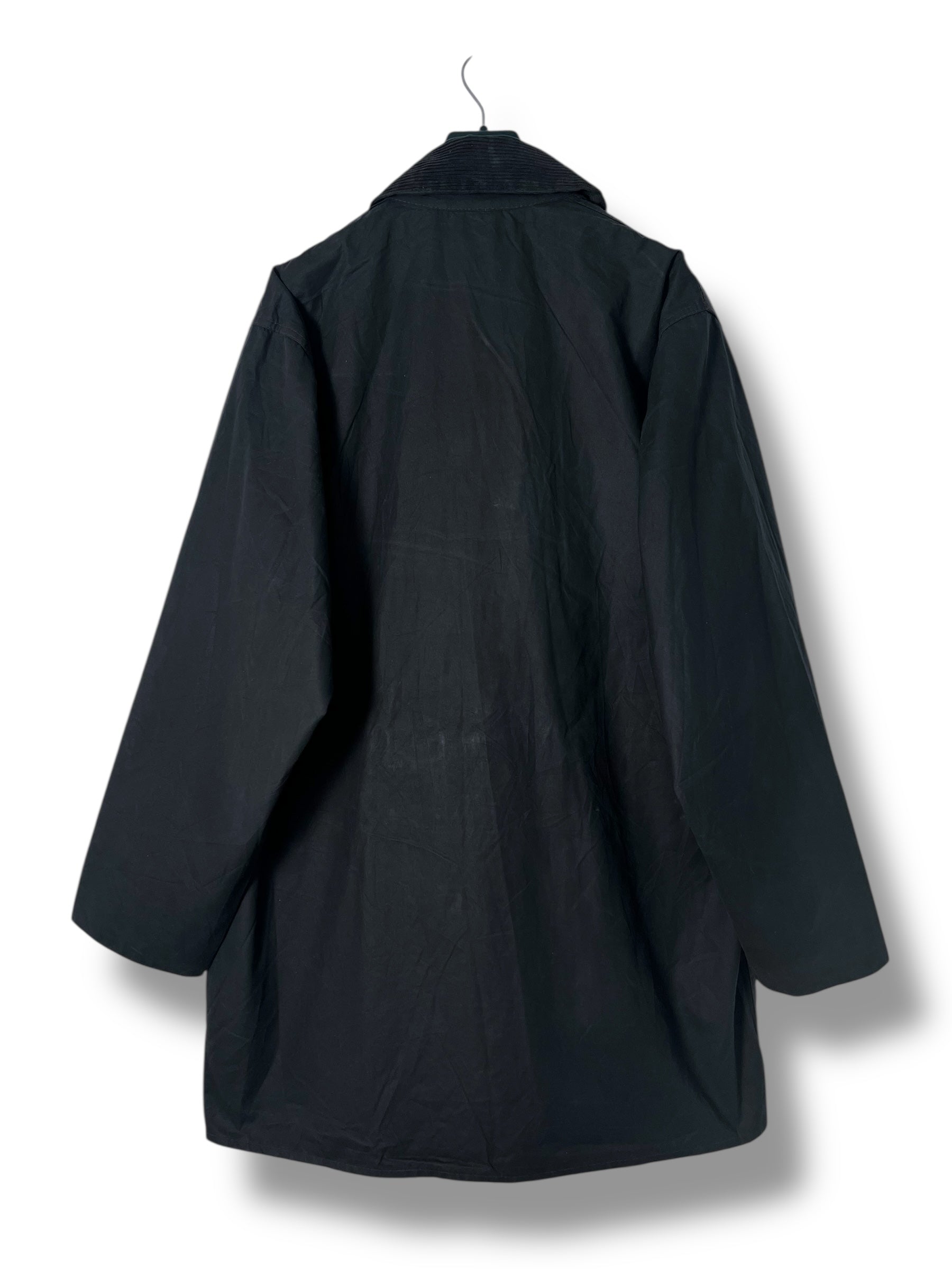 Keywords: Barbour Border, navy wax jacket, vintage Barbour C46, long-line jacket, waxed cotton, heritage outerwear.