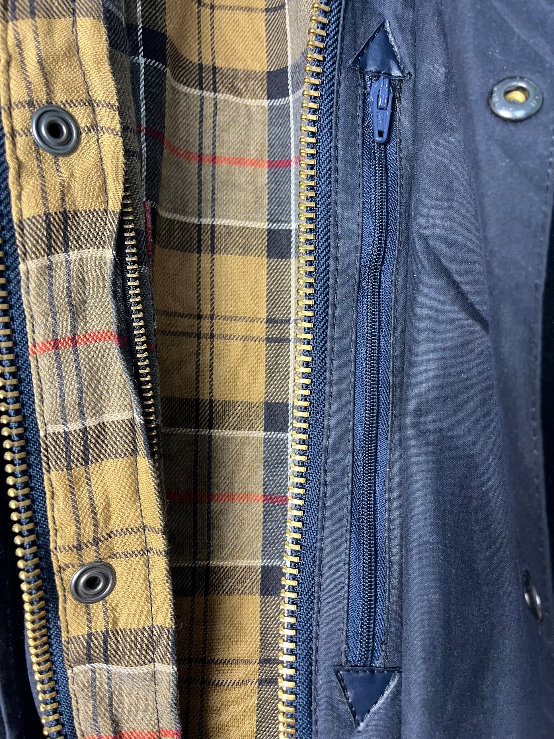 Keywords: Barbour Border, Barbour C34, wax jacket XS, vintage Barbour, Selected by DRAPS, navy Barbour, waxed cotton jacket, Barbour pre-owned, English outerwear