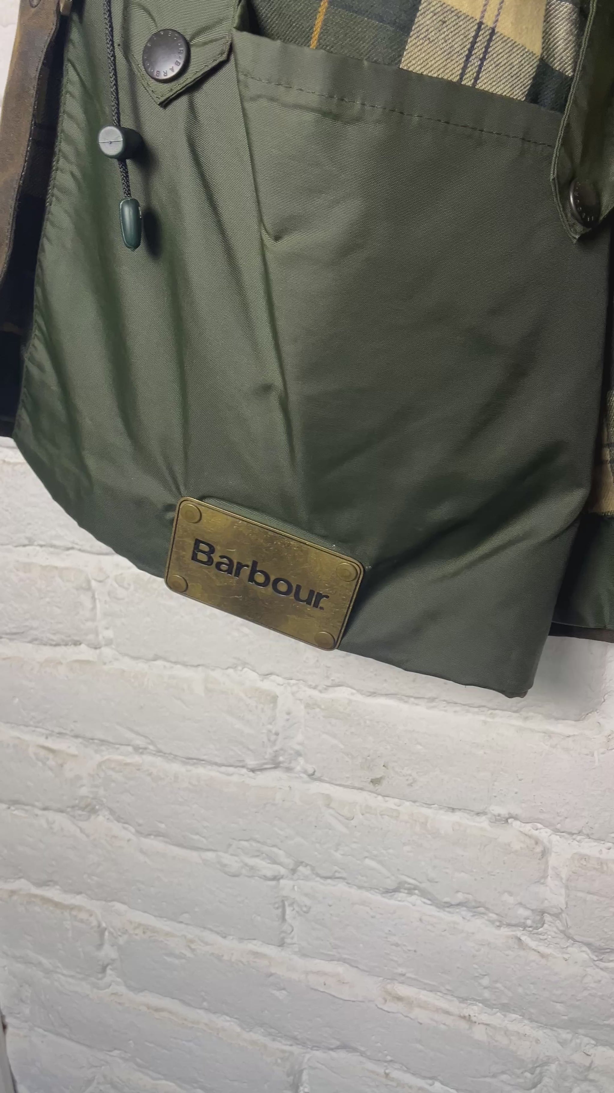 • Warm internal pocket with metal Barbour plate