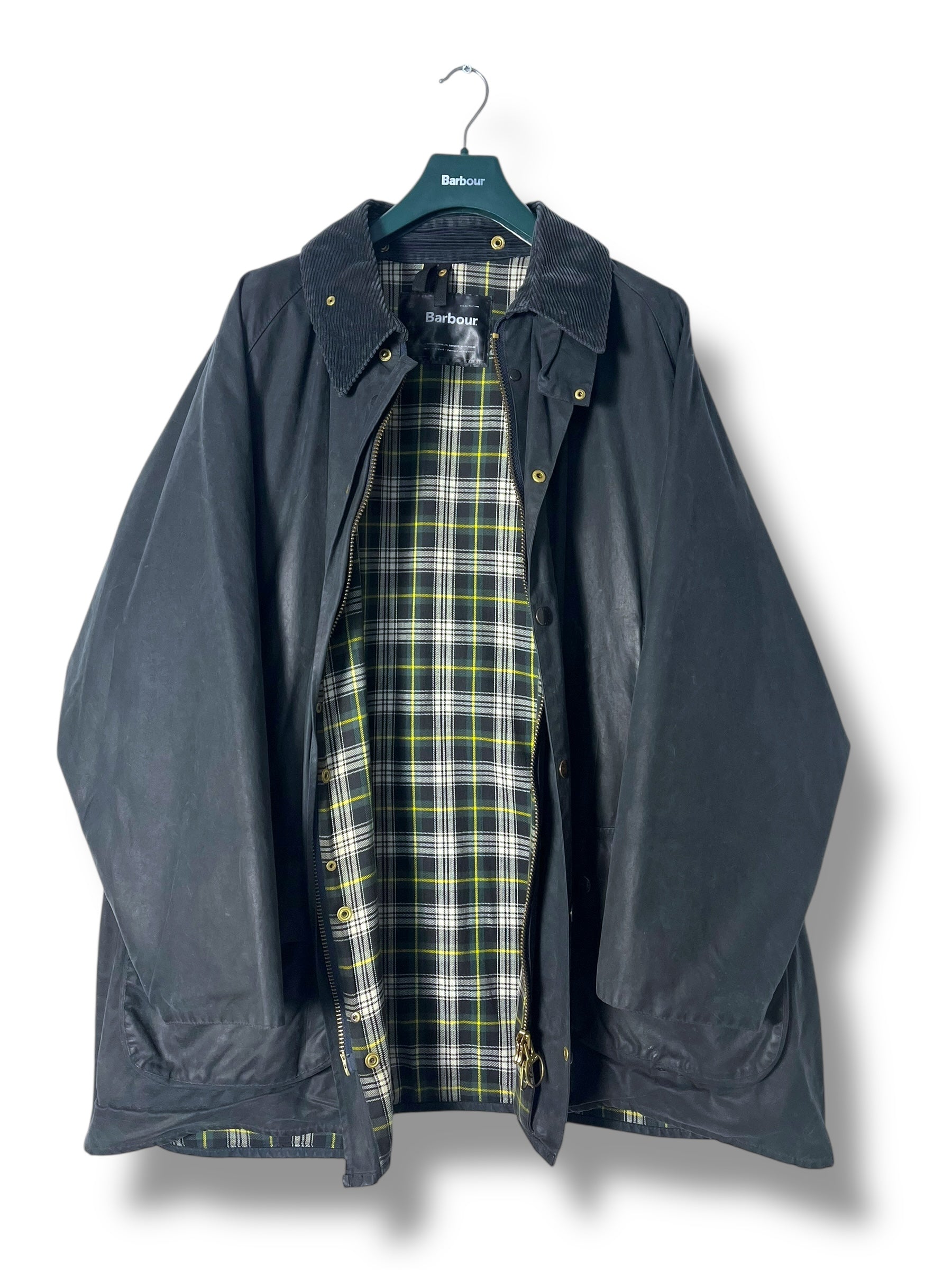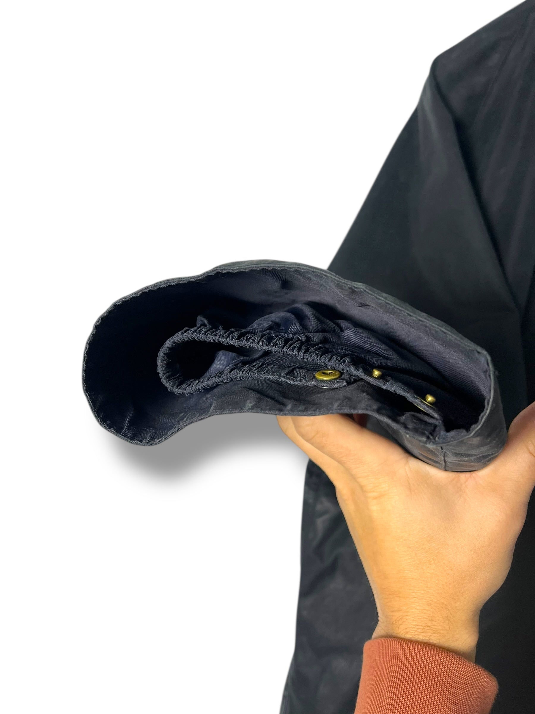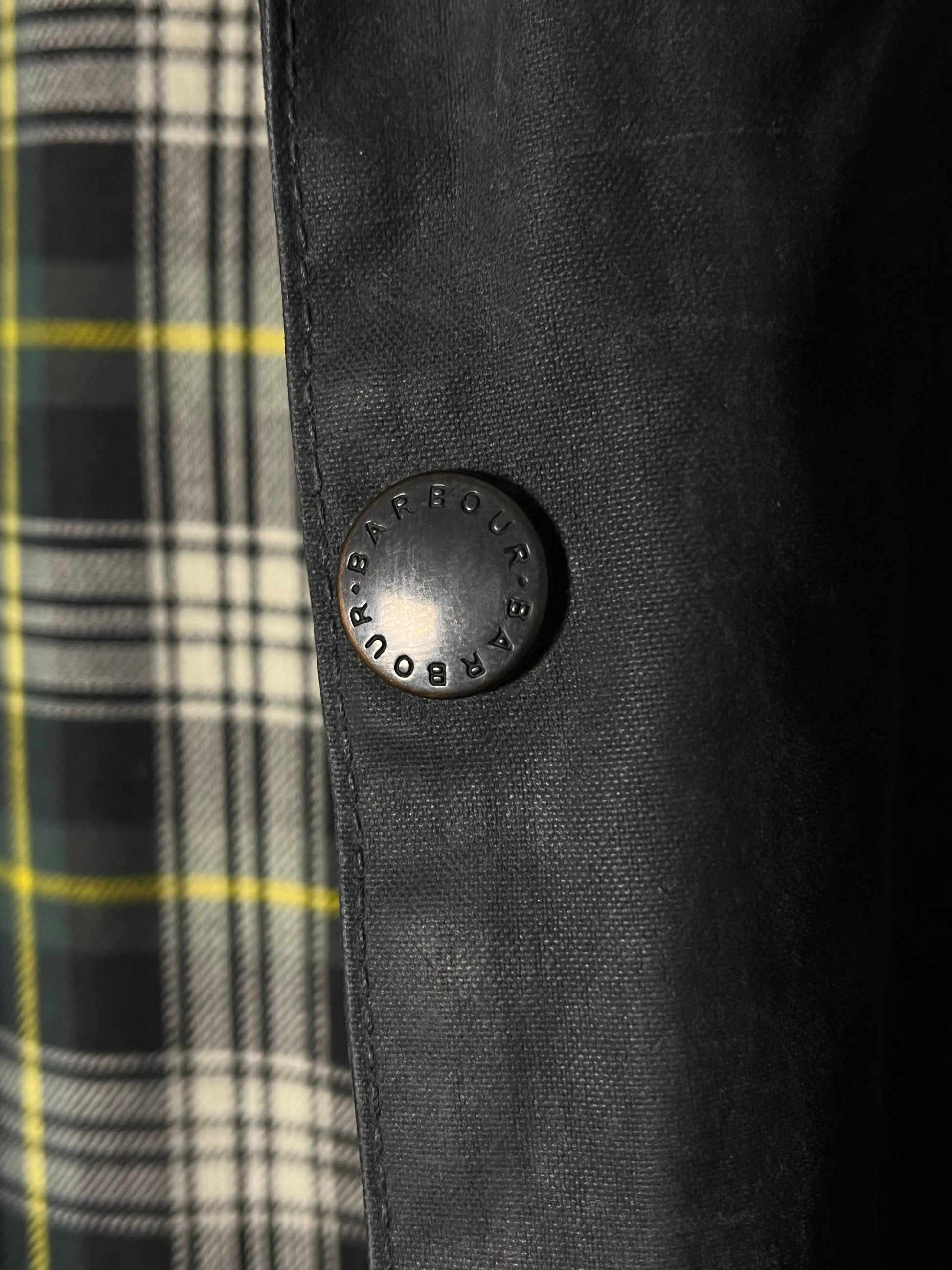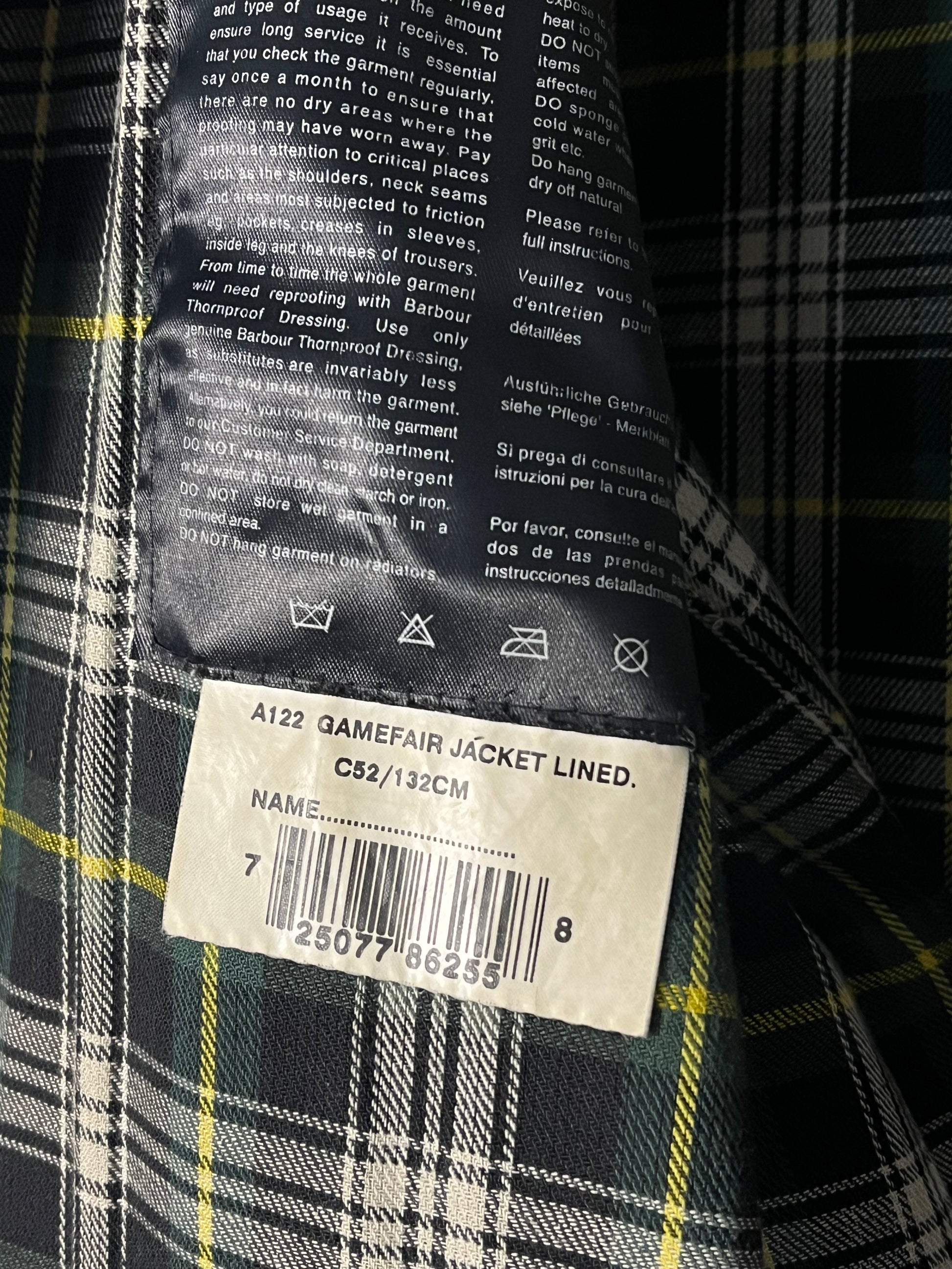 Keywords: Barbour Game Fair, C52, wax jacket, navy jacket, vintage Barbour, long fit jacket, countryside coat, Barbour 2000s, pre-owned Barbour.