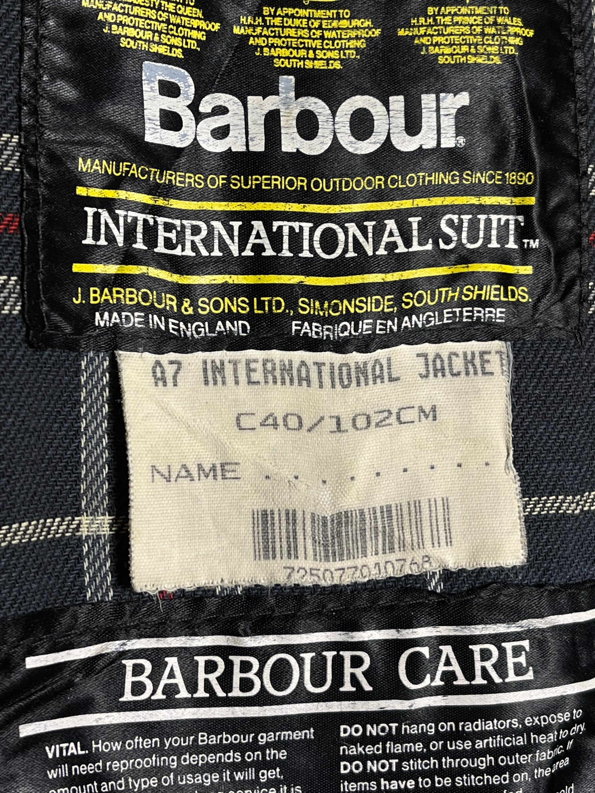 Rare Barbour International A7 Wax Jacket 1992 Navy Blue Vintage C40 UK