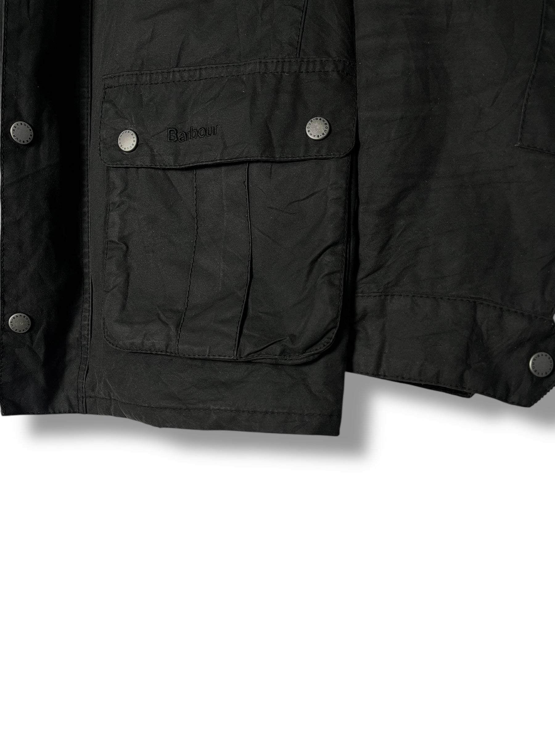 Keywords: Barbour Duke, Barbour International, vintage motorcycle jacket, black waxed cotton, Duke S, Barbour wax, DRAPS vintage.
