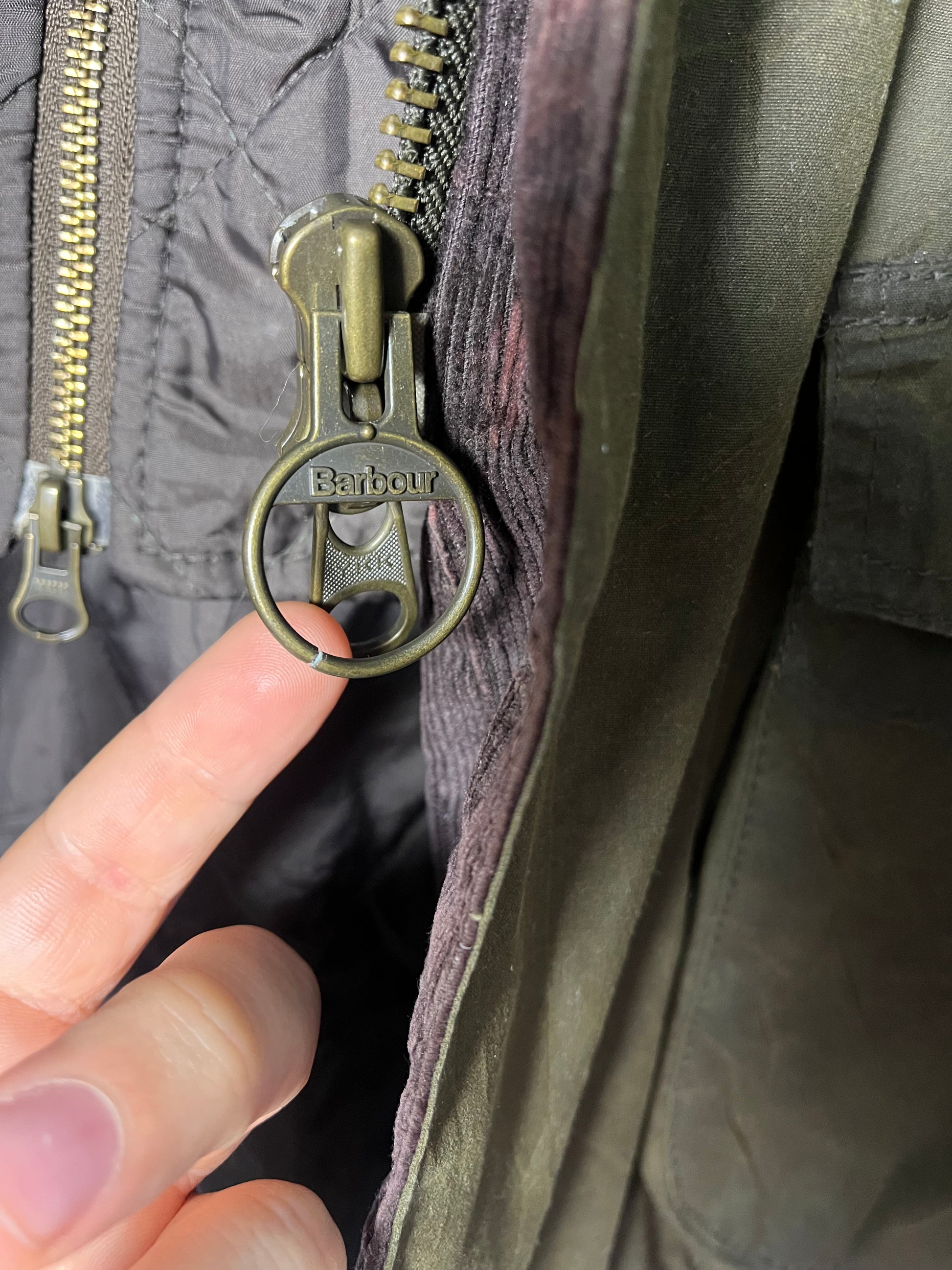 The zip puller shows a very small, barely noticeable sign of wear (see photos).