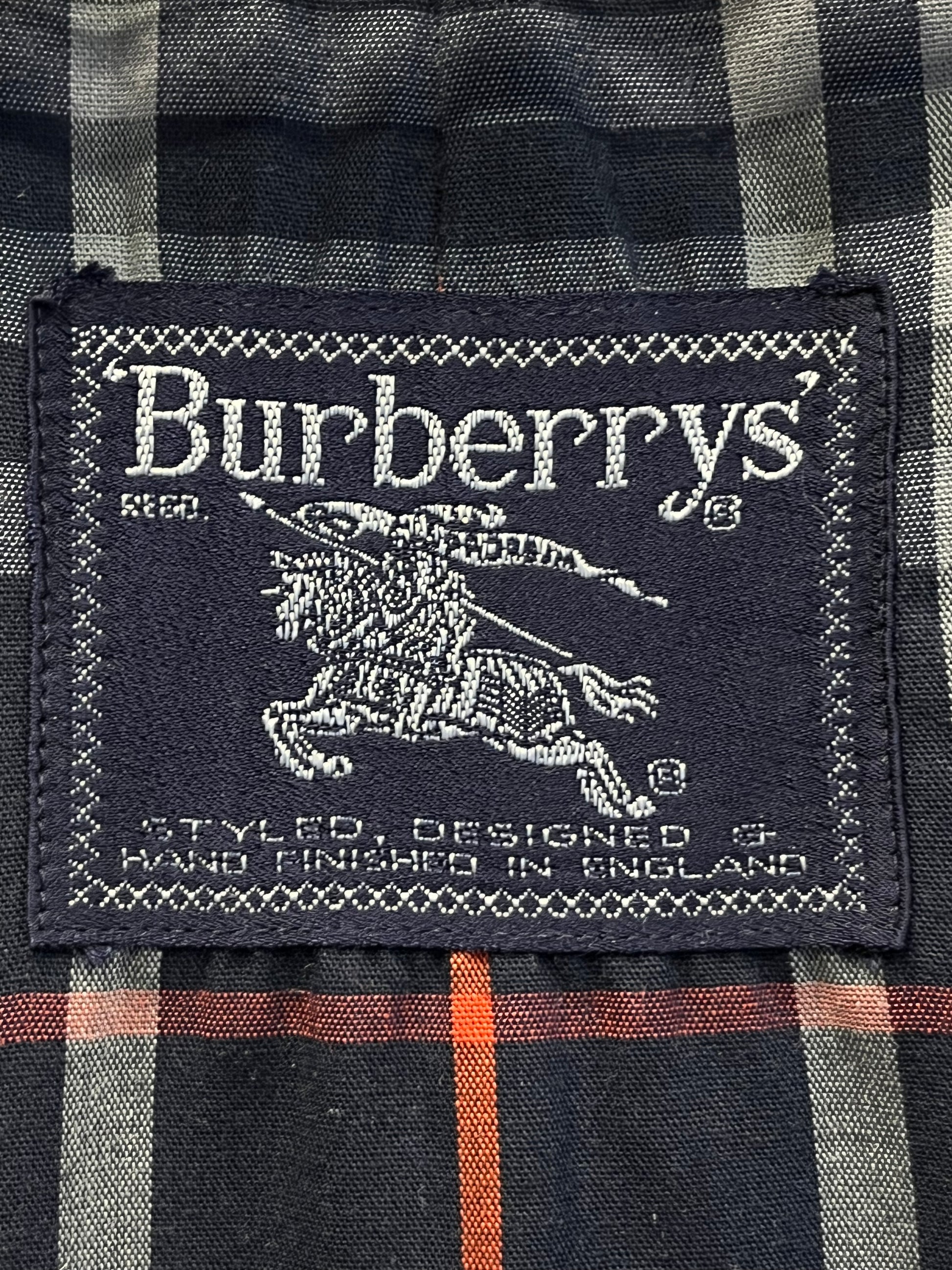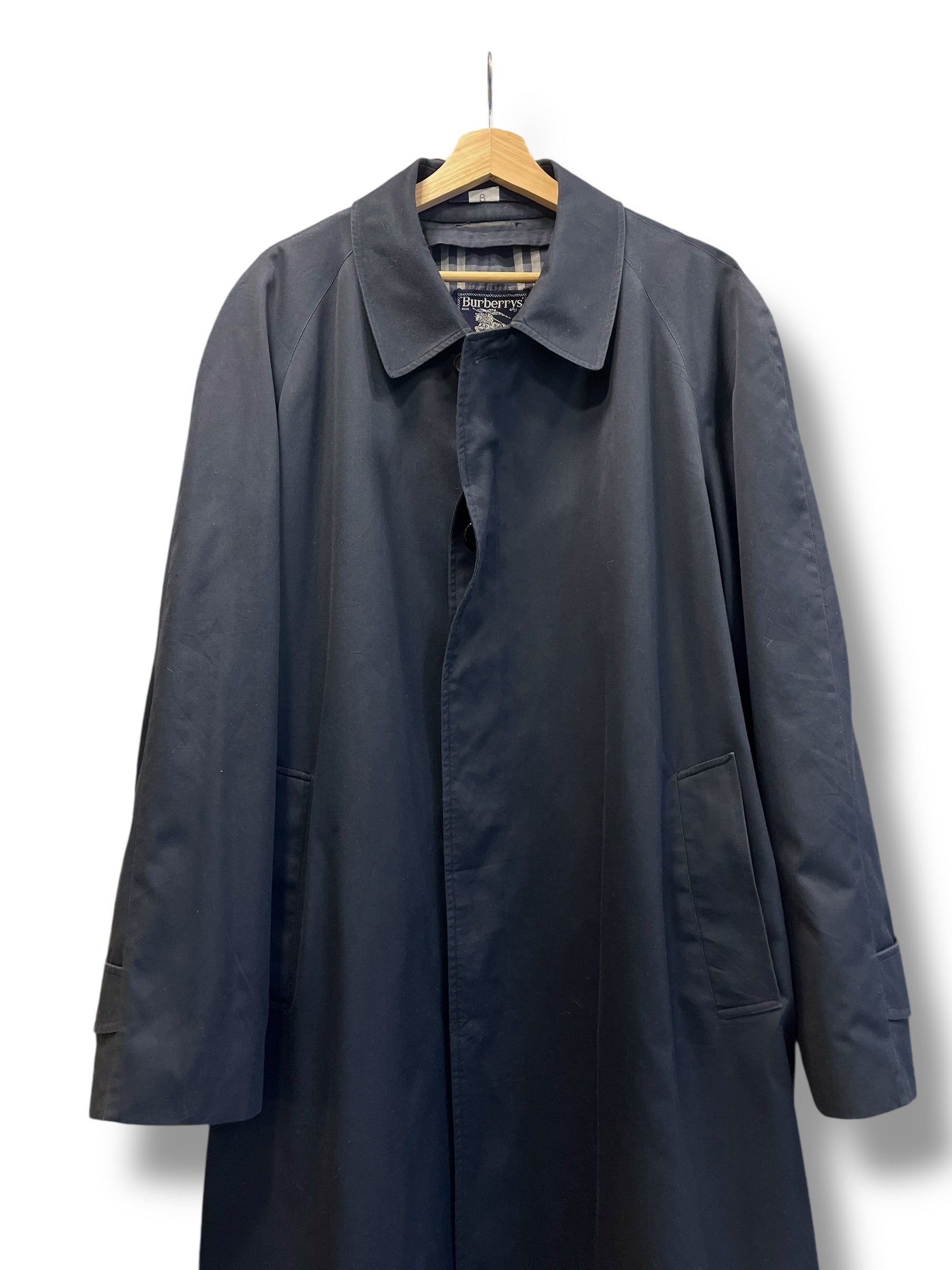 Keywords: Burberry navy trench, Burberrys coat men XL, vintage Burberry trench 90s, British heritage coat, concealed button trench.