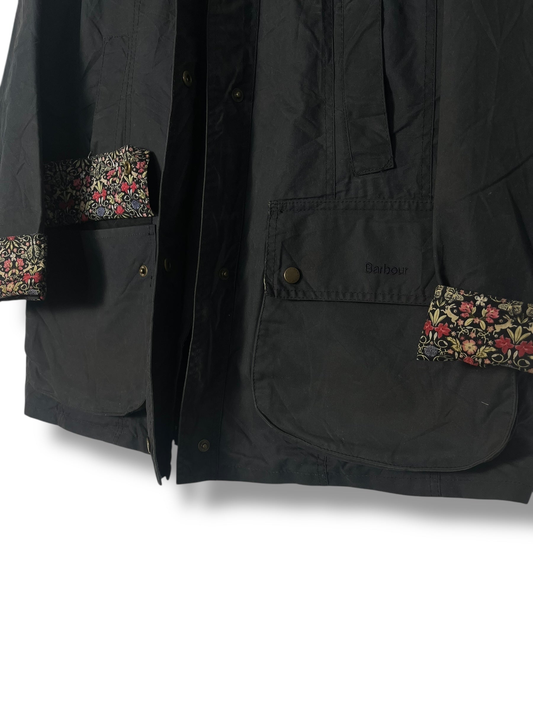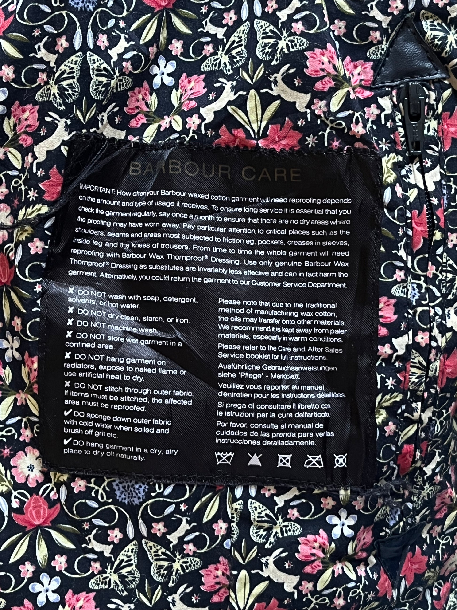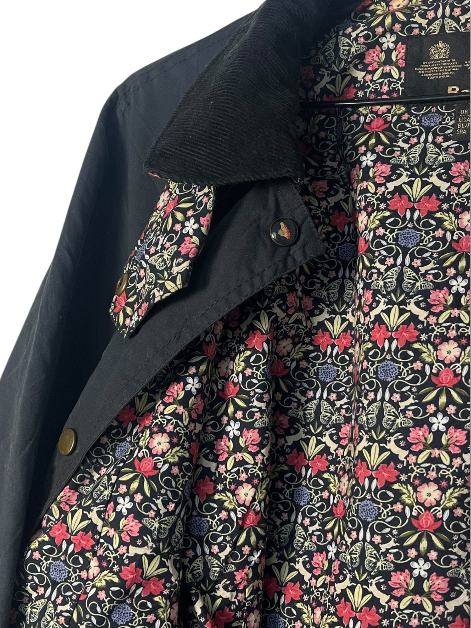 Keywords: Barbour Beadnell, Liberty Lining, Ladies, Wax Jacket, Navy Blue, Floral, Vintage, Pre-owned, Waxed Cotton, Classic British Style