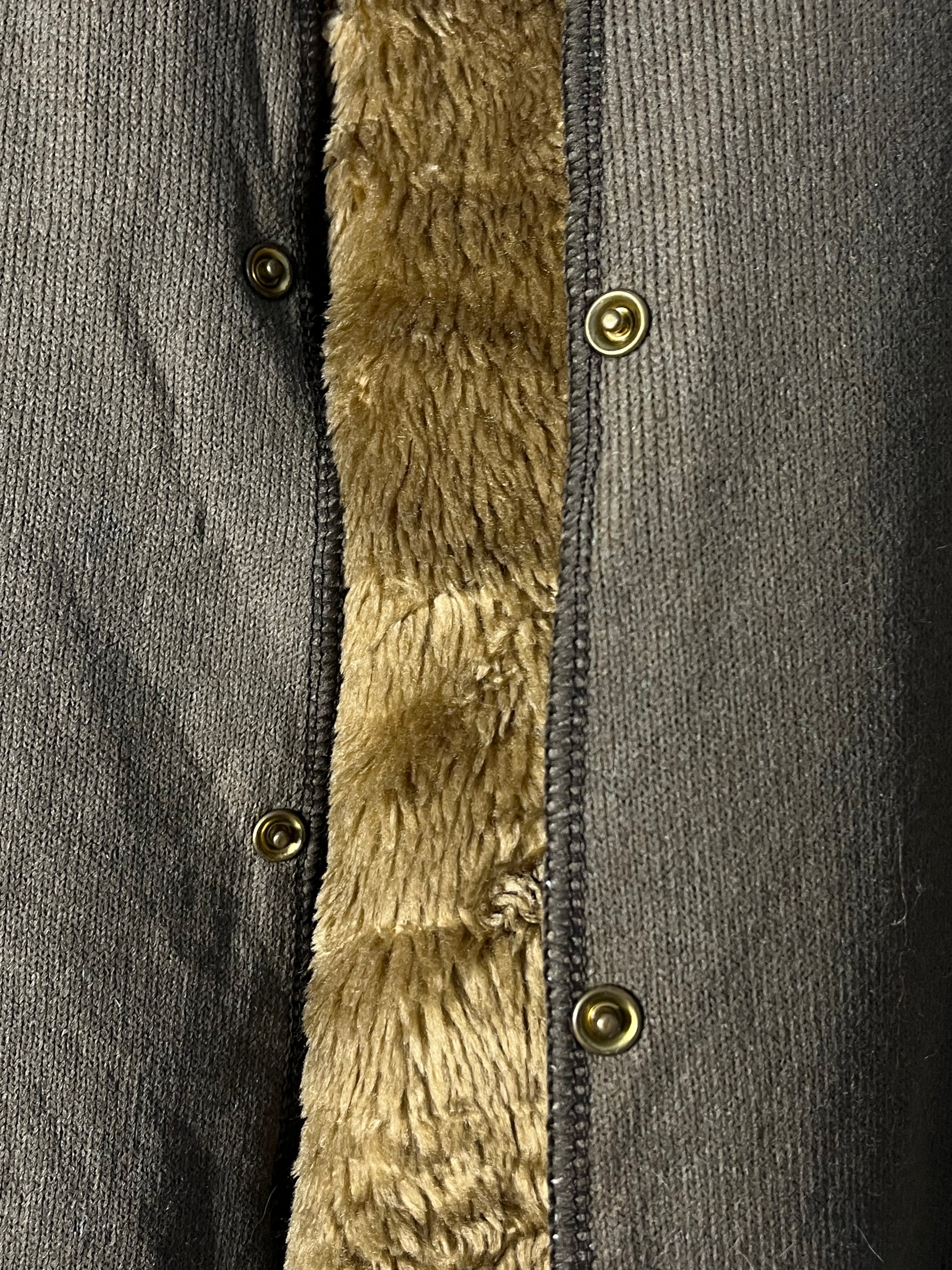 Original Barbour body warmer liner – vintage model with brass button clips designed to attach inside your waxed jacket. Made from warm pile fleece, it instantly turns your jacket into a winter-ready piece while keeping the original vintage look and fit.
